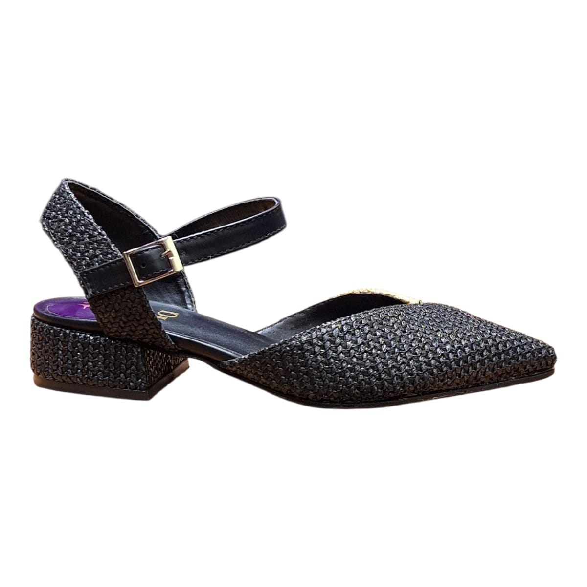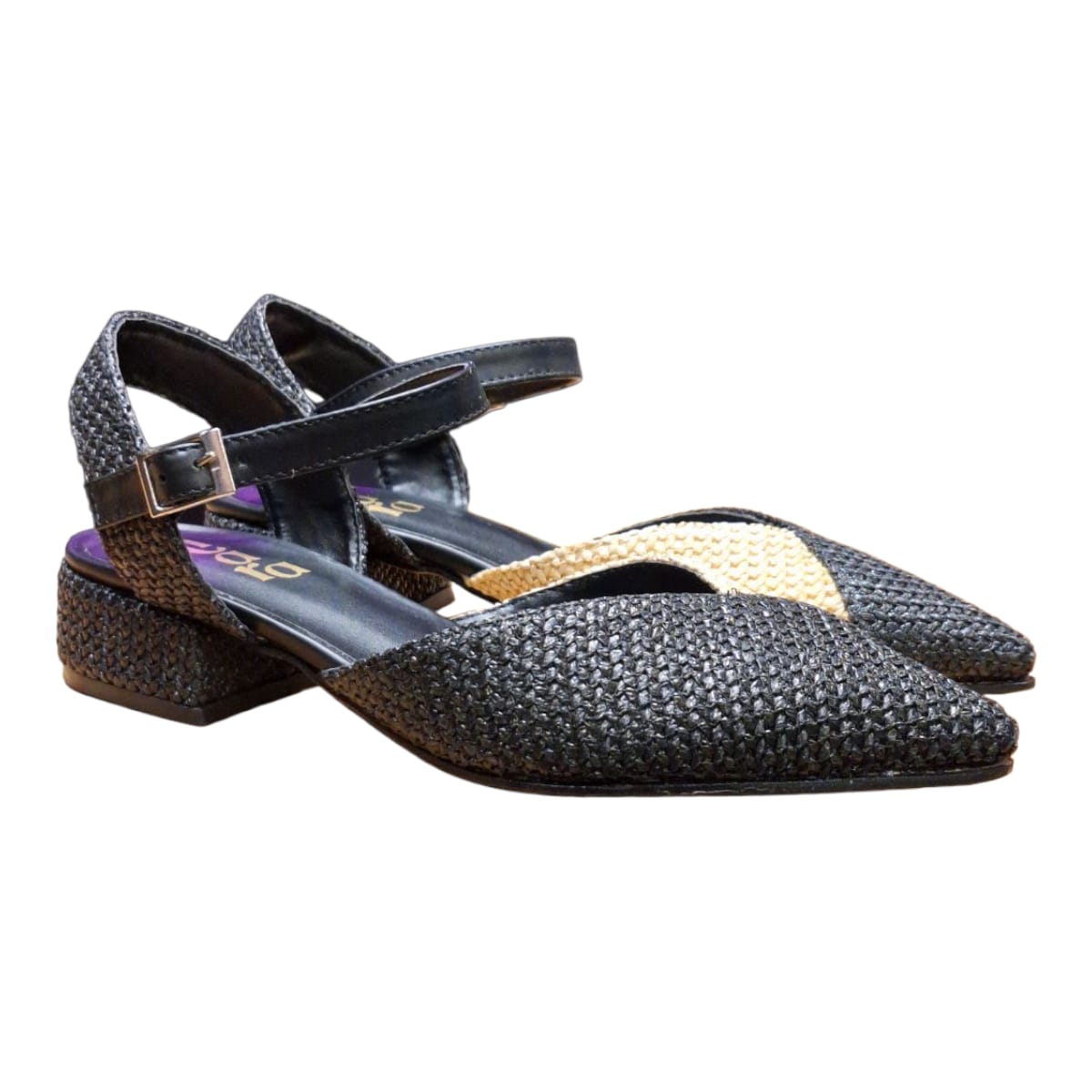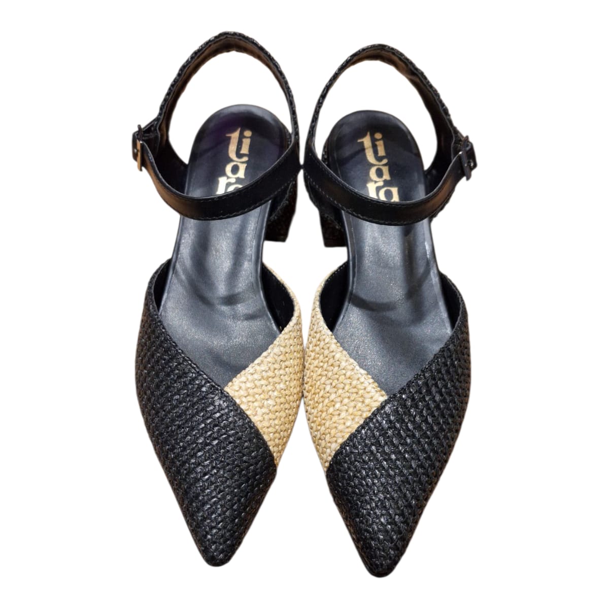 estiletto bajo de rafia combinado en natural y negro muy comodos
