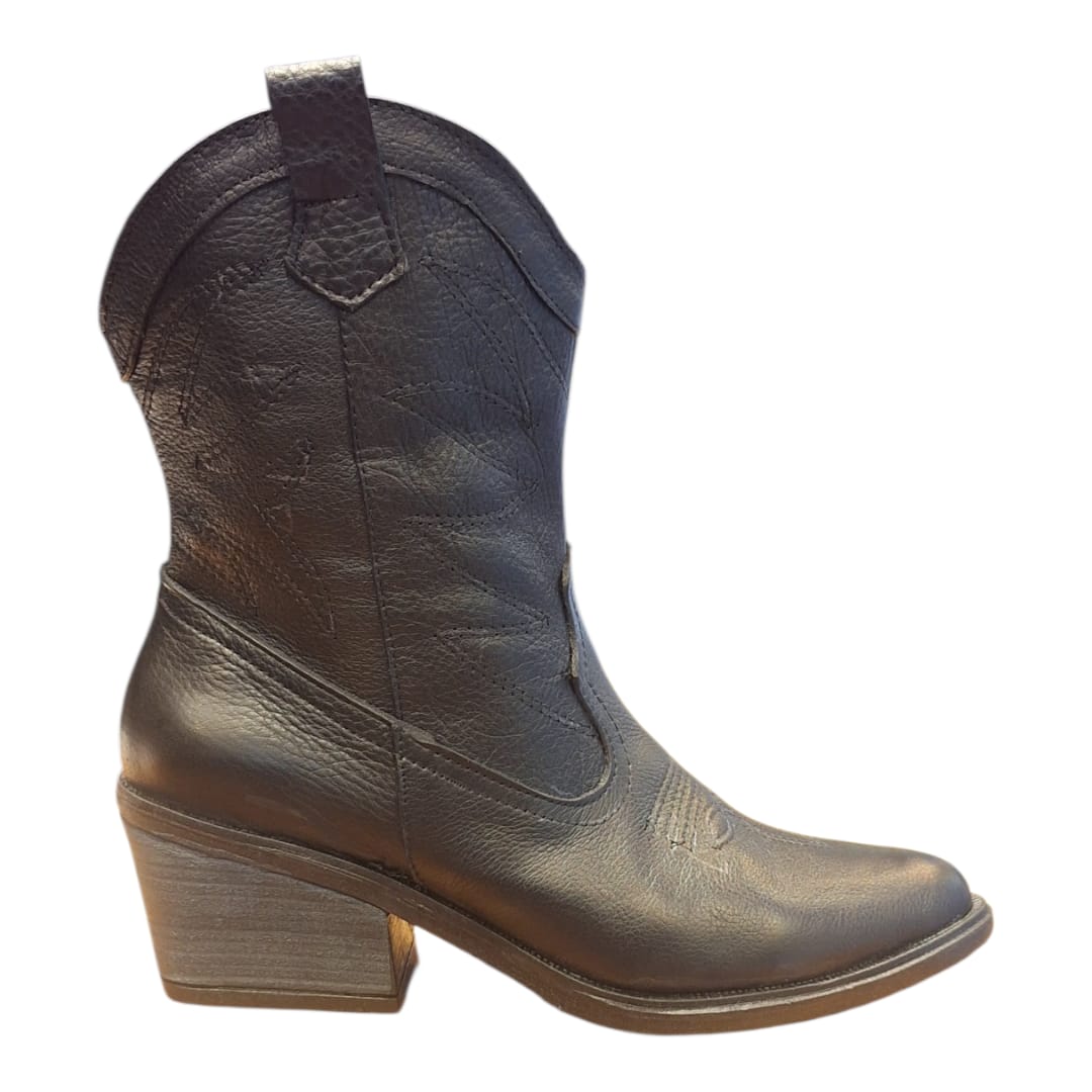 texana de cuero caña corta color negro base de goma muy livianas y comodas